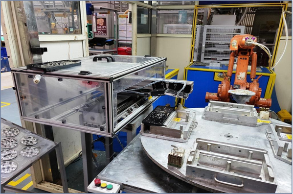 This is fully automatic loader, which also ejects finished pc from CNC machine and