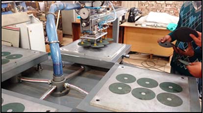 This machine is used for doing screen printing on Norton Grindwell discs.