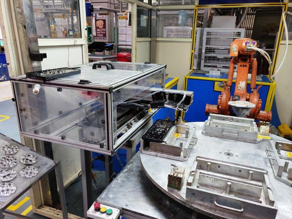 Machine also detects not OK pcs, and separately drop them in plastic bin.